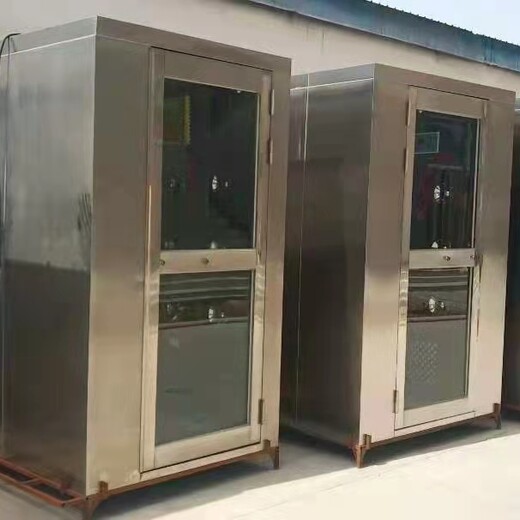 3。天津万博防静电风淋室 防静电风淋门生产厂家构造是由箱体、门、空气过滤器、送风机、配电箱、喷嘴等几大部件组成。风淋室的底板通常由不锈钢制成,箱体用不锈或钢板折弯焊接表面为乳白色烤漆。箱体采用的冷轧钢板制造,表面静电喷塑处理,美观大方,内底板全不锈钢板制做耐磨擦,易清洁。箱体主材及外形尺寸可根据客户要求定制。 风淋室的作用: 风淋室是人员进入洁净室无尘车间所需要的净化设备,通用性强,可与所有的洁净室和洁净厂房配套使用,工作人员进入车间时,通过此设备,用强劲洁净的空气,由可旋转喷嘴从各个方向吹淋至人身上,而迅速除去去附着在衣服上的灰尘、头发、发屑等杂物,它可以减少人进出洁净室所带来的污染问题。风淋室的两道门电子互锁,可以兼起气闸室的作用,阻止外界污染和未被净化的空气进入洁净区域。杜绝工作人员将头发,灰尘、xi菌带入车间,达到工作场地严格的无尘净化标准。