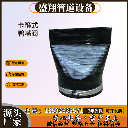 鸭嘴阀由橡胶加人造纤维经特殊加工而成,形状类似鸭嘴,故称鸭嘴阀。在内部无压力情况下,鸭嘴出口在本身弹性作用下合拢;随内部压力逐渐增加,鸭嘴出口逐渐增大,保持液体能在高流速下排出。早设计出鸭嘴阀时,为了与国家标准相配合,规定了800以下口径鸭嘴阀的法兰标准参照国标1.0Mpa螺栓孔中心距和法兰外径,800以上管径(含),参照国标0.6Mpa螺栓孔中心距和法兰外径。