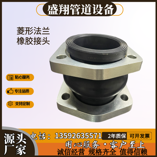 菱形橡胶接头是一种用于管道连接的柔性部件,通常由橡胶和金属组成。它的作用是在管道系统中提供一定的位移和缓冲,以适应由于温度、地质、基础沉降等原因引起的管道变形和振动。橡胶接头能够吸收管道系统中的振动和噪声,并能够通过自身的弹性变形来适应管道的位移和变形。由于橡胶接头的橡胶部分具有较高的弹性和可压缩性,因此它可以随着管道的位移而发生相应的变形,从而起到缓冲和位移补偿的作用。