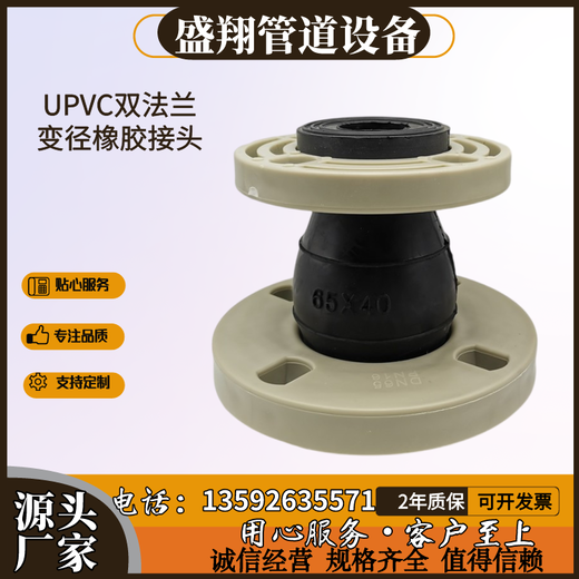 综上所述,UPVC法兰式橡胶软连接是一种多功能的管道连接件,具有减震、降噪、密封和补偿管道位移的功能,广泛应用于各种管道系统中,特别是在需要减震、降噪和密封的场合,如化工、建筑、给排水等领域。