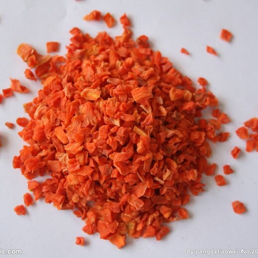 脱水胡萝卜,有胡萝卜粒、胡萝卜片、胡萝卜圈,规格,橙红色,食品,保留了胡萝卜固有的干物质,含有丰富的维生素和矿物质等,使用方便,便于储存,用于食品配料。