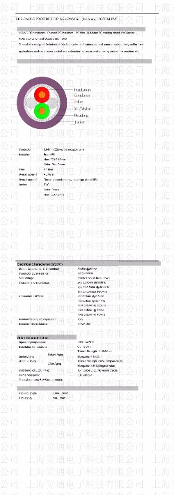 镀锡铜编织铝箔屏蔽, 聚氯乙烯 (PVC)外护套颜色紫色用于总线系统固定安装使用. 裸铜丝直径0.64mm, 300 V