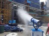 雾炮机是根据风送原理,使用高压泵、微细雾化喷嘴将水雾化,再利用风机风量和风压将雾化后的水雾送到较远距离,当水雾颗粒与尘埃颗粒直径大小相近时,行程的吸附过滤、凝结的几率大,那么只要产生于粉尘颗粒大小相当的微米级水雾颗粒使其与之吸附,相互粘结,聚集增大并在自身重力的作用下沉降,就可达到降尘的目的,当水雾形成时产生负离子,粉尘中大量的正离子与水雾中的负离子结合,从而迅速降尘,水雾与干燥的粉尘解除,增加了空气的湿度,同时吸收大量空气潜热,从而起到良好的降温作用,水雾降尘技术产生的水雾颗粒大小主要集中在1-50微米左右,对50微米以下的粉尘具有的降尘效果,从而在污染源头即可控制可吸入粉尘颗粒对人体的危害。目前在许多露天堆料场、作业现场,作业粉尘和局部扬尘是粉尘治理的难题。很多企业过去采用水喷淋的措施治理,但覆盖面积小、用水量大等问题使水喷淋的治理效果极不理想。喷雾机可以根据用户现场的实际污染状况以及粉尘量的多少,量身设计远射程喷雾方案,以达到理想的粉尘治理效果。