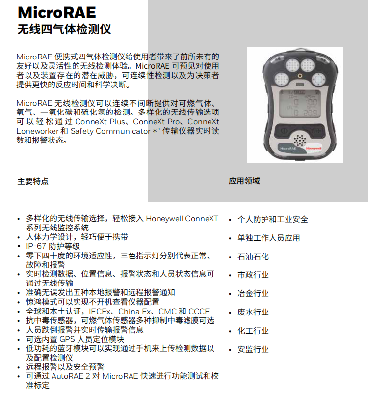 MicroRAE PGM-2680有毒四合一气体测爆仪小巧灵敏,握在手里大小刚刚好,另仪器背面有鳄鱼夹,携带极其方便。新增设了无线传输功能及蓝牙功能,给使用者带来了更大的便利。可以连续不间断提供对可燃气体、氧气、一氧化碳和硫化氢的检测。传感器为抗中毒型,防水等级更是高达IP-67。跌倒报警功能更好的保护现场使用人员的生命安全。