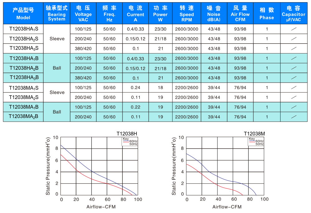 泰锐格T12038HA2SL220V通风散热AC轴流含油风机
