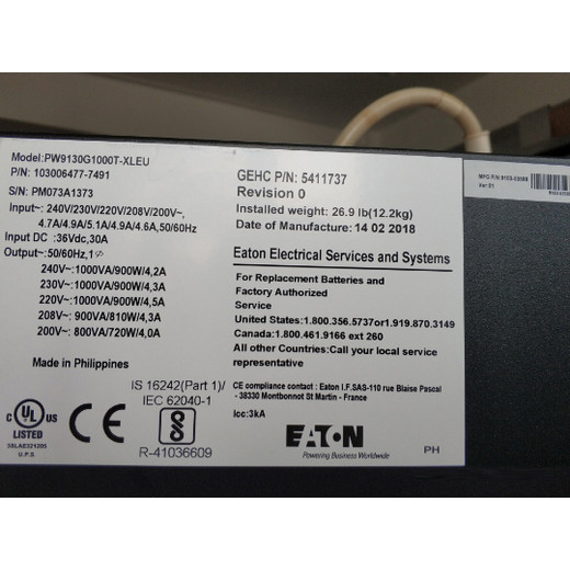EATON伊顿UPS不间断电源PW9130G1000T-XLEU,通用电气DSA用UPS