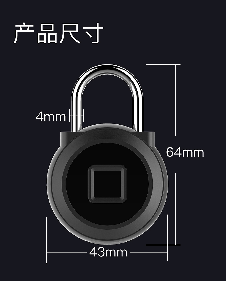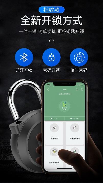 开锁方式:指纹开锁+手机APP开锁/小程序开锁/临时密码开锁,APP可随时查看开锁记录,手机开锁可查询定位。