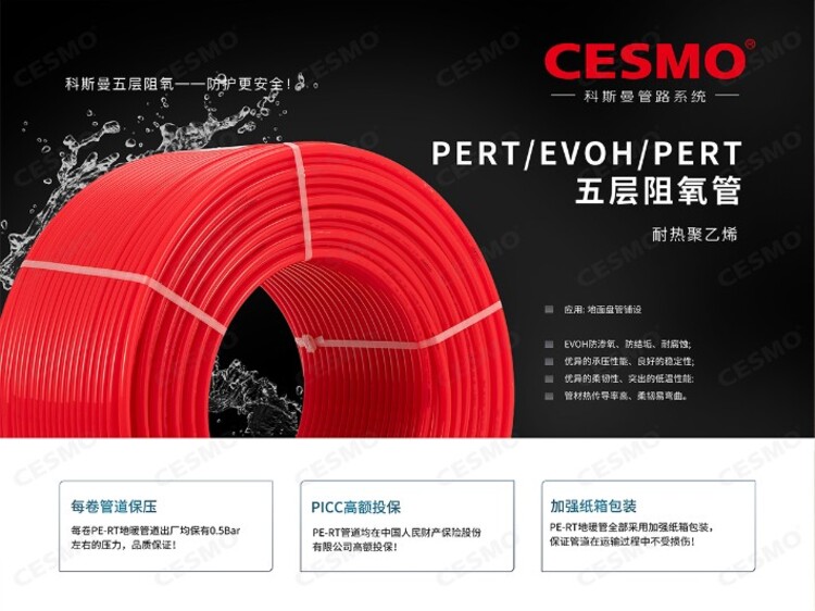 CESMO科斯曼地暖管道-PE-RT阻氧管(珍珠红)