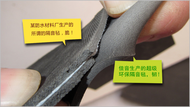 隔音毡需要完全符合国家建材环保标准(Ⅰ类)。其中游离甲醛含量为0.03mg,远远国家标准指标(≤0.08mg)