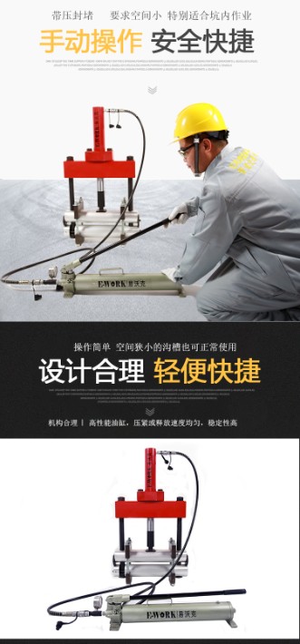 易沃克液压式PE管止气夹封堵器液压夹管道断气夹燃气管道封堵器