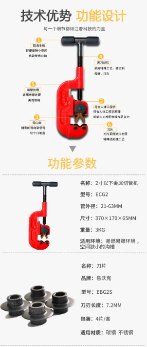 易沃克重型管子割刀手动切管机防爆割管刀金属切管器钢管冷割刀