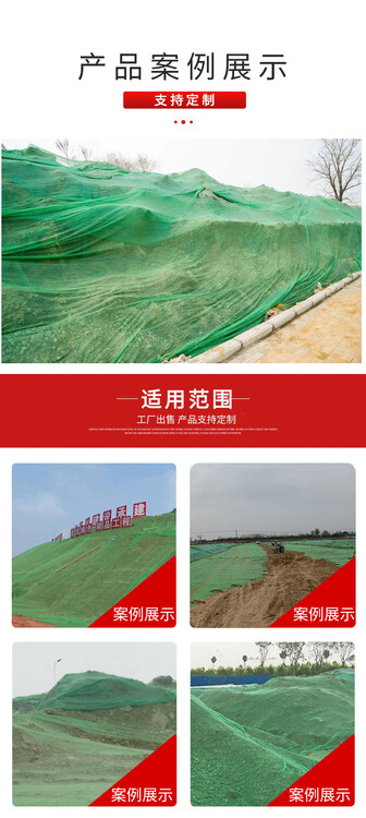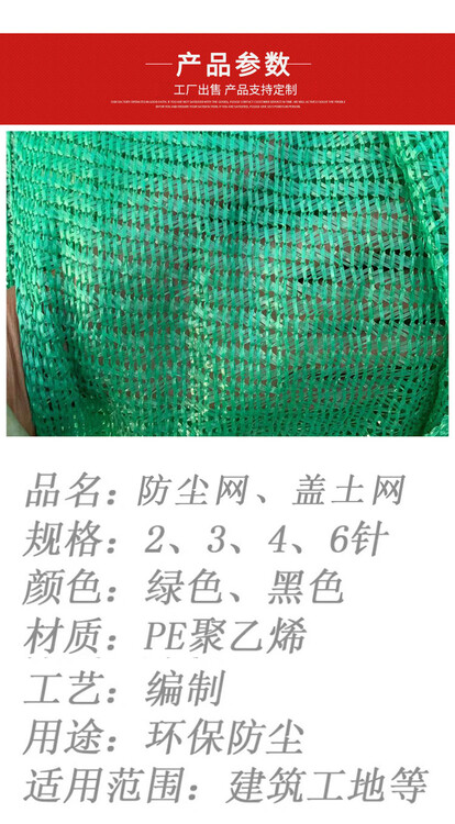 4针绿色盖土网覆盖要求:全市各类裸露场地、土堆、基坑开挖等可采用扬尘防治网覆盖、植被种植等防尘措施,空置区域应根据使用周期和使用功能,采用场地硬化、扬尘防尘网覆盖或植被种植等防尘措施,使用的砂、石等建筑材料和建筑垃圾露天堆放石,采用扬尘防治网进行覆盖。临时施工作业,要尽可能减少土石方裸露面积和时间。