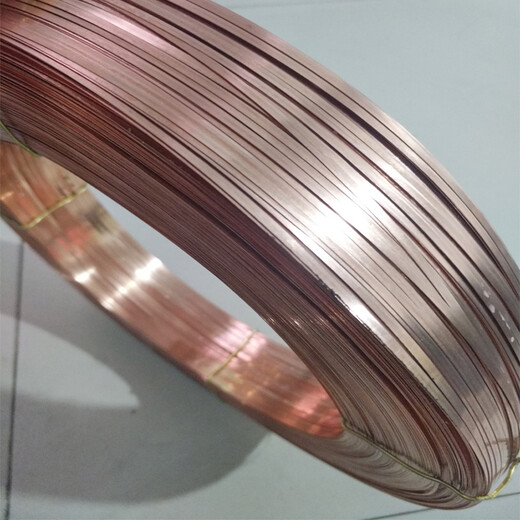 紫铜扁线,也称扁丝、压扁线、平角线材或超窄带材,指的是截面近似圆角矩形的异性金属丝,厚度从0.025mm至2mm,宽度一般小于5mm。其宽厚比从2:1至50:1不等。由于扁丝形似带状,有时也被称为超窄扁带。相比常见的圆丝,扁丝这种形态在散热性、焊接接触面积、硬度控制等方面都具有优势。