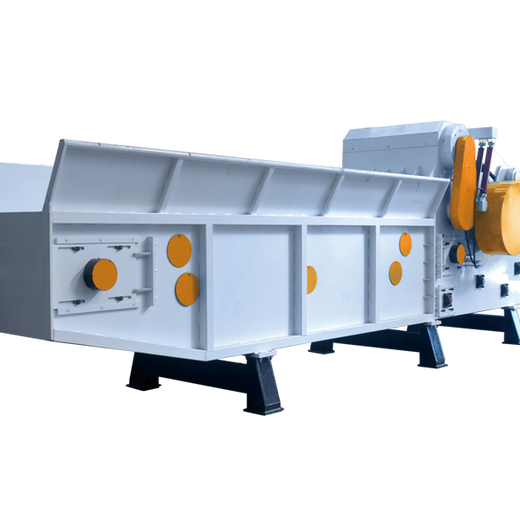整体破碎机前节采用链板输送方式,链板长度主要采用抓车式一次性上料,只要将原料放入链板输送中将其输送到主机前节的进料压辊上,然后由进料压辊碾压后送到设备的破碎腔体内,破碎腔体内的主要破碎装置是装有刀片或锤头的转子,转子通过再电机或柴油机的驱动高速转动,碰到由进料压辊输送到破碎腔体内的物料,告诉运转中的转子将物料切碎、撕碎,破碎后的物料符合要求,然后由筛网排出,不符合要求的物料在破碎腔体内进行二次破碎,直到符合要求为止。