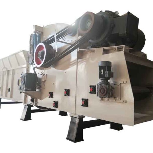 综合破碎机其破材作业主要依靠冲击能来完成。锤击式综合破碎机工作时,电机带动转子进行高速旋转,木材均匀地进入综合破碎室,高速旋转的锤头撞击、剪切、撕裂木材导致木材被破碎,同时木材自身的重力作用使木材从高速旋转的锤头冲向架体内的挡板、筛条,在转子下部,设置筛板,粉碎木材中小于筛孔大小的颗粒级由筛板排出,大于筛孔大小的木材阻力留在筛板上,继续受到锤击和研磨。