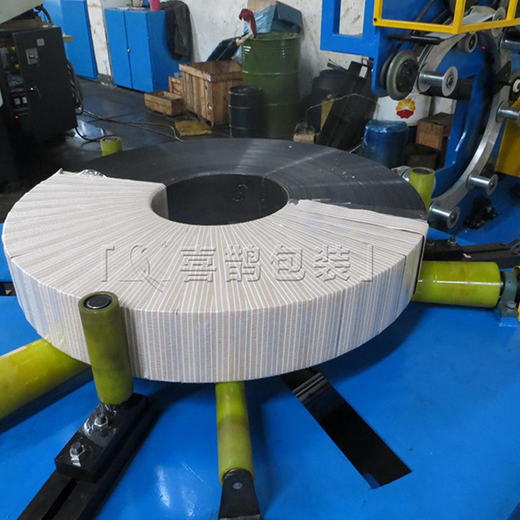 将包装材料头自动缠绕在料卷上,打包结束后自动切断材料