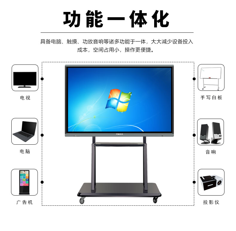 华视伟业 V 系列《55 寸触控一体机》,匠具心的双色喷砂拉丝设计,护角无缝对接,超薄人性化的设计演绎出典雅,精美大方的非凡气质,配上高清细腻的清晰画面给用户带来全新的视觉体验,多点触控,操作起来如行云流水,掌控自如,人机交流让平板信息化随身所欲、得心应手,实现了传统教学和多媒体的结合,教学演示更加生动形象,是信息化互动教学、会议培训,展示企业文化,宣传品牌形象的佳选择。主要应用在幼儿园,学校,企业,培训机构,会议室,品牌形象展示等等。