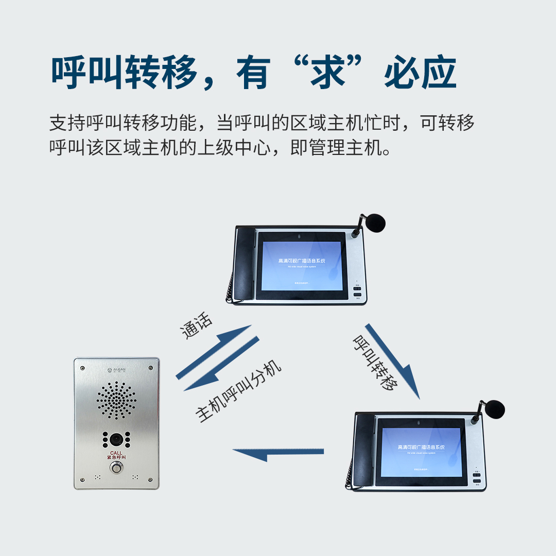 呼叫转移,当呼叫的区域主机忙时,可转移呼叫该区域主机的上级中心,即管理主机;