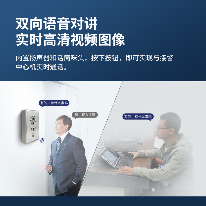 单键呼叫,可通过中心呼叫目标,实现双向对讲、广播喊话、监听等功能;