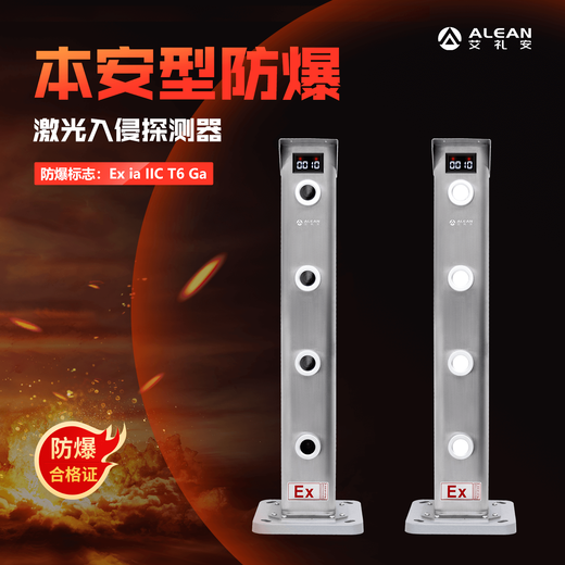 艾礼安ABL-J(EX)防爆激光入侵探测器是按照国家标准GB3836.1-2010《爆炸性气体环境用电气设备1部分:通用要求》和GB3836.4-2010《爆炸性环境用防爆电气设备本质安全型“i”》中有关规定制造生产。
