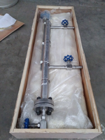 当物体被液体浸没的体积不同时,所受的浮力也不同,因此,可以根据物体所受浮力的大小来测得物体被浸没的高位(液位),故称为变浮力式液位计。浮筒式液位计正是根据这一原理制成的液位计检测仪表,它主要由变送器和显示仪表两部分组成。液位计因不用轴、轴套、填料等进行密封,故他能测量较高压力的液体介质的液位,高可达32MPa。检测元件浮筒的长度决定了仪表的量程,一般为300~2000mm。