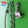 W预绞式悬垂线夹主要用于OPGW光缆与直线杆塔或转角小于25℃的杆塔连接固定,每杆塔配一套悬垂线夹;OPGW悬垂线夹可以减小光缆在挂点上的静态应力,提高光缆的抗振能力,克服风力振动的动力应态力;还可以OPGW光缆的弯曲不超过允许的数值,从而不产生弯曲应力,这样了光纤不会产生损耗,线夹与光缆的接触面大,应力分布均匀,无应力集中点,增强了光缆的刚度,加强了对光缆的保护作用。
