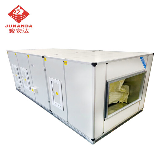 产品特点:箱体:箱体采用型材框架加装彩钢板制作的低热阴壁板组合而成。框架为铝合金型材骨架,壁板为聚氨酯整体发泡,导热系数为0.022W/M.°C。也可采用高倍聚乙烯壁板或玻璃棉壁板。该结构防锈耐蚀,美观***,箱体漏风率小。风机:采用低噪声率外转子离心风机,风机经动平衡校正,确保机组运行平稳,使之具有低噪声和较高全压的特点。表冷器:表冷器主体采用无缝紫铜管和铝箔,经的机械或液压涨管工艺使之紧密一体后经2.8MPa气密封检漏测试,性能符合标准,了产品性能和可靠的质量。干式凝水盘:精心设计的凝水盘和特厚内衬保温材料确保机组在恶劣环境工况下无凝露滴水。凝水盘微倾安装,有利于凝结水排放。同时凝结水管按非满流状态计算,排放能力为机组正常运行时排放量的5倍以上。凝结水的及时排放减少了凝水盘的“触水”时间,即有利于减轻凝水盘的腐蚀又避免凝水盘滋长细菌,了室内空气品质。空气过滤器:特别设计的***板式过滤器可任意从机组左右、上下方便地抽出,所以特别适用于空间紧凑场合的维护清洗。滤料可采用锦纶凹凸网或无纺布材质。骏达空调设备有限公司,是生产中央空调末端的厂家,主要产品有:各种风机盘管、立式明装风柜、立式暗装风柜、吊装风柜、卧式风柜、恒温恒湿组合风柜、水冷冷风机组、风冷模块机组、通风柜、新风机等,具有率、、低噪音、安装便捷、维修方便等。