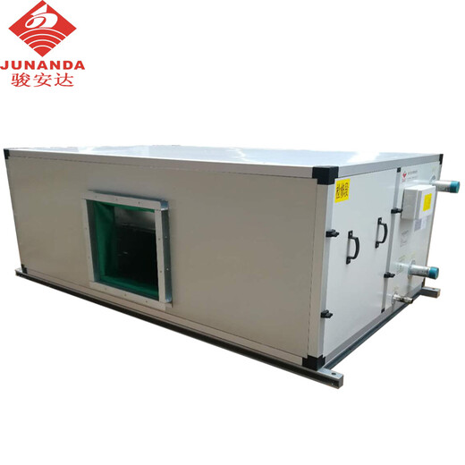 产品特点:箱体:箱体采用型材框架加装彩钢板制作的低热阴壁板组合而成。框架为铝合金型材骨架,壁板为聚氨酯整体发泡,导热系数为0.022W/M.°C。也可采用高倍聚乙烯壁板或玻璃棉壁板。该结构防锈耐蚀,美观***,箱体漏风率小。风机:采用低噪声率外转子离心风机,风机经动平衡校正,确保机组运行平稳,使之具有低噪声和较高全压的特点。表冷器:表冷器主体采用无缝紫铜管和铝箔,经的机械或液压涨管工艺使之紧密一体后经2.8MPa气密封检漏测试,性能符合标准,了产品性能和可靠的质量。干式凝水盘:精心设计的凝水盘和特厚内衬保温材料确保机组在恶劣环境工况下无凝露滴水。凝水盘微倾安装,有利于凝结水排放。同时凝结水管按非满流状态计算,排放能力为机组正常运行时排放量的5倍以上。凝结水的及时排放减少了凝水盘的“触水”时间,即有利于减轻凝水盘的腐蚀又避免凝水盘滋长细菌,了室内空气品质。空气过滤器:特别设计的***板式过滤器可任意从机组左右、上下方便地抽出,所以特别适用于空间紧凑场合的维护清洗。滤料可采用锦纶凹凸网或无纺布材质。骏达空调设备有限公司,是生产中央空调末端的厂家,主要产品有:各种风机盘管、立式明装风柜、立式暗装风柜、吊装风柜、卧式风柜、恒温恒湿组合风柜、水冷冷风机组、风冷模块机组、通风柜、新风机等,具有率、、低噪音、安装便捷、维修方便等。