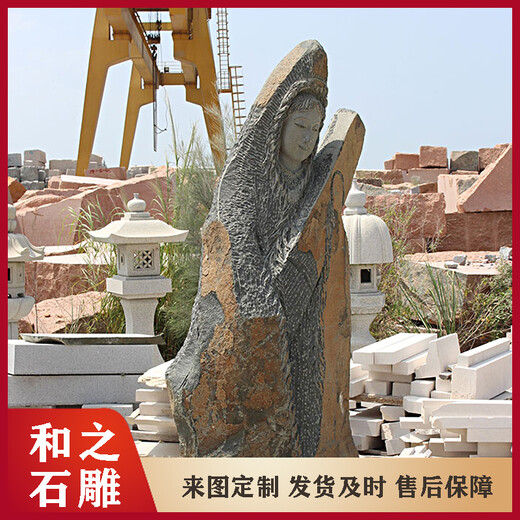 加工定做天然观音像石头南海观音石头刻字价格福建石雕观音生产厂家