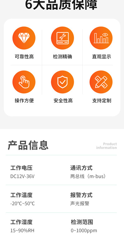 点型气体探测器可现场探测可燃或有毒气体。点型气体探测器输出M- BUS信号。传感器内置微控制器和温度补偿算法, 测量准确。该系列探测器能够对工业环境下可测量的气体进行连续监测, 并将气体浓度转变为M- BUS信号, 传输给气体报警控制器, 由控制器对其进行识别、显示和处理。
