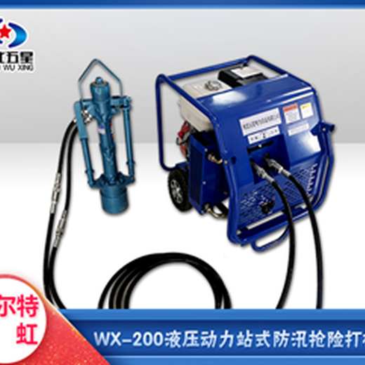 河北五星电力设备有限公司开发研制的WX-200型液压动力式防汛抢险打桩机,是一款被广泛用于堵截堤岸溃口、抢护堤岸崩塌、加固堤岸等领域的便捷打桩机,是一种新型的用于汛期抗洪抢险、汛前、汛后堤防加固维护,江河湖堤岸的打桩机械。它不仅能代替人力夯打的作业方式,减轻人力作业的劳动强度,提高打桩效率,而且实现了防汛抢险打桩机械化。