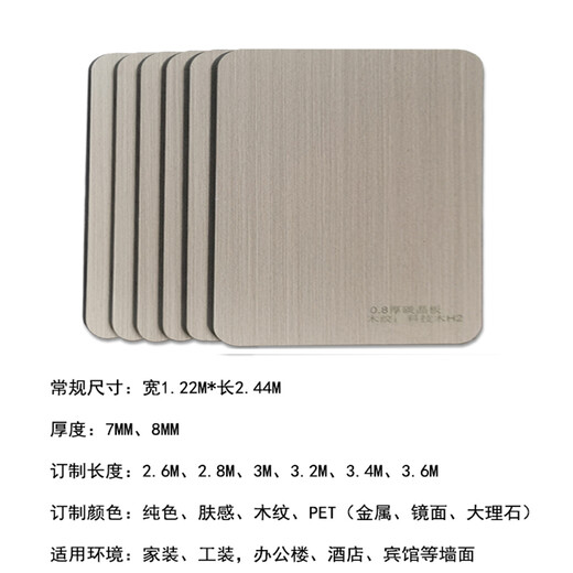 碳晶板是一种新型的装饰建材,碳晶板又称碳晶板木饰面、竹炭纤维木饰面、竹炭碳晶板等。是由竹木纤维中添加活性炭成分,主要由树脂、钙粉、木纤维、炭、稳定剂、防火晶石粉等材料通过高温高压共挤冷确成型。通过表面热处理,碳晶板有隔音、耐酸碱、防潮、阻燃等多种特性,是一种实用的装修材料。对比传统的装修,集成墙板有环保、安装快捷、保温隔热等优势。可用作护墙,吊顶,电视背景墙,相筐等室内装饰。适合毛坯房直接安装,施工简便,适用于家装、工装、别墅,办公楼、酒店、宾馆、KTV包间、学校、旧房翻新等场所墙面、墙裙和吊顶室内装饰。