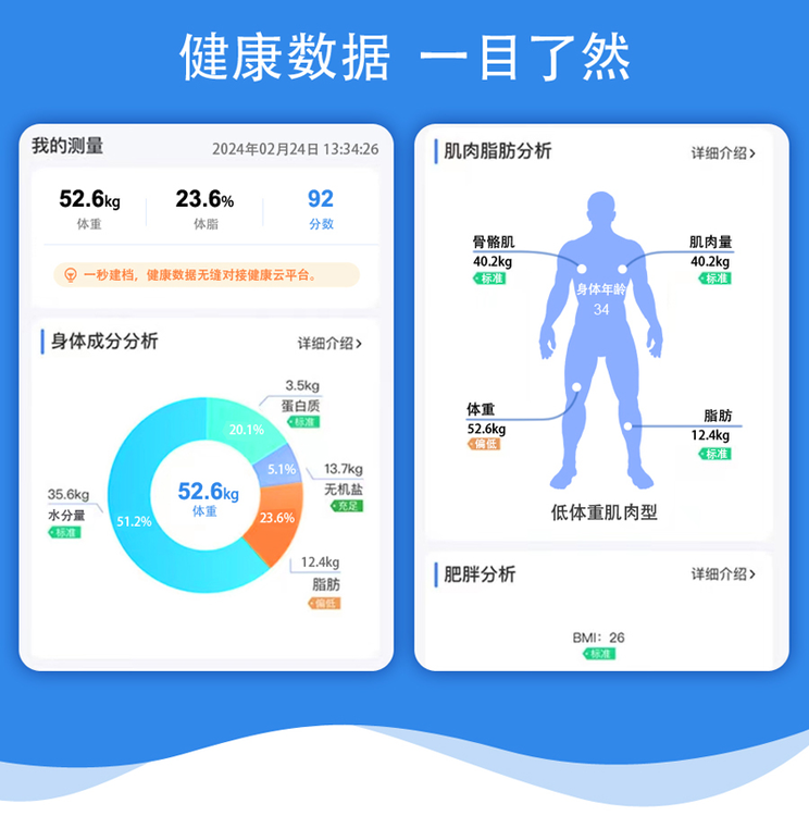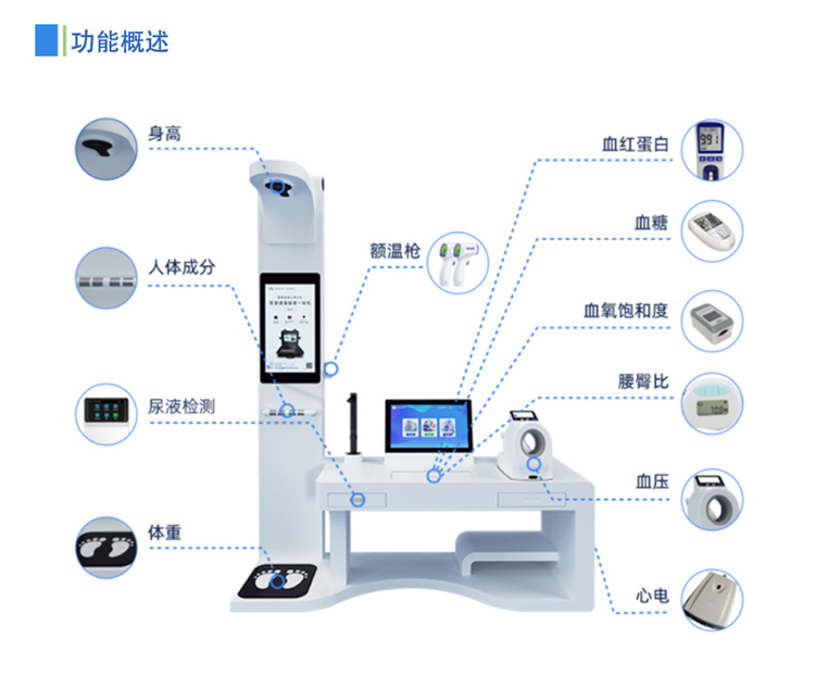 上正华瑞健康一体机采用自动化、智能化的设计,能够在几分钟内快速测量多个生理指标,如血压、心率、体温、血氧饱和度、体重等,相比传统的手动测量更为快速和准确。