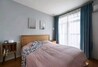 主卧室的设计还是非常小清新的,蓝灰色的背景墙搭配浅蓝色的窗帘,再加上粉色系的床品和原木色的家具,让人感觉清新而又舒适。
