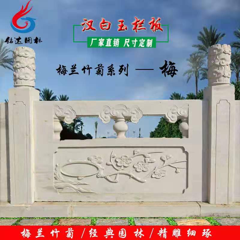 近日,铭达园林承建沧州市黄骅贝壳湖草白玉石雕栏杆顺利完工并交付甲方使用。