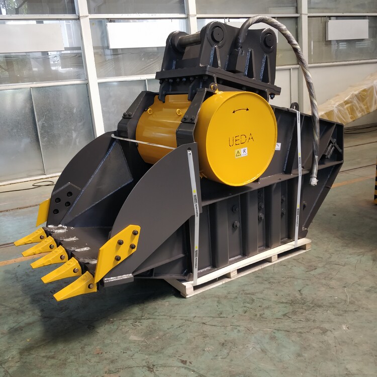 挖掘机破碎斗可快速破碎矿山石、预制板及混凝土钢梁,迅速分离混凝土、钢筋,省时省力,还可节省资源废物利用,一举多得。对应各种挖掘机机型(8~50吨)的混凝土石料回收再利用的再生碎料破碎斗颚式破碎斗,可以减少工程现场混凝土块的搬运,购买碎石产生的运输等工程成本。另外,该产品还可减少由于车辆运输导致的交通堵塞,交通事故,降低城市噪音,道路维护成本,以及减少二氧化碳排放等,促使混凝土废料在工地现场内直接回收再利用。挖掘机破碎斗适用于破碎坚硬的岩石, 广泛应用于采石,矿山,砾石以及废弃材料和沥青的回收利用等。破碎铲斗适合于重量超过10吨的挖掘机,破碎铲斗紧凑,多用途并适用于破碎和回收处理惰性材料,或因拆除产生的建筑材料(道路工程-基建-管道及管线)。 与较大的机型相比,尽管其体积小,自重轻,但产量可达到20-30吨/小时。 适用于破碎坚硬的岩石, 广泛应用于采石,矿山,砾石以及废弃材料和沥青的回收利用等。