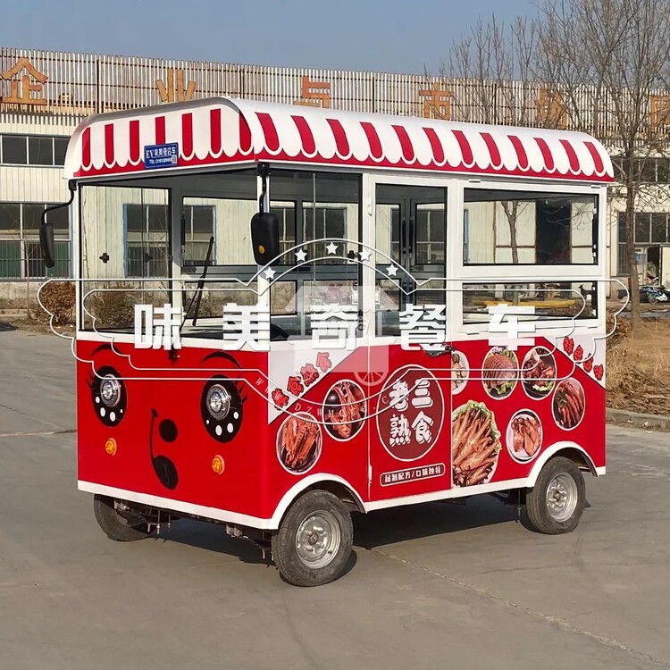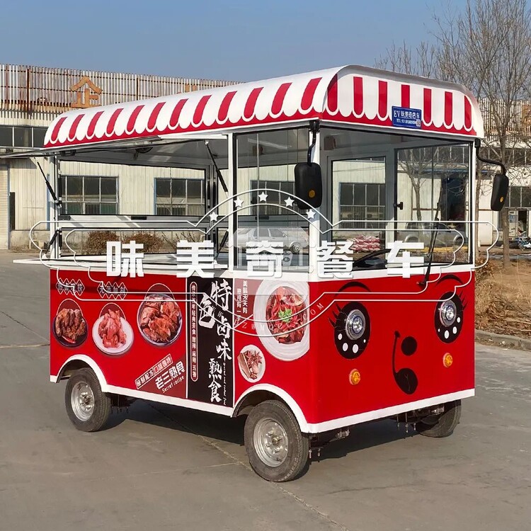 电动小吃车是一种使用电池作为动力源的移动小吃车,它通常比较小巧便携,可以在繁忙的城市街道上穿梭,因此非常适合在人流密集的地方进行销售。