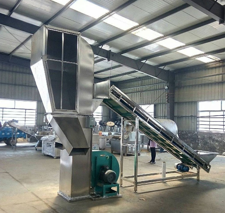 风选机介绍:新鲜毛豆在筛选前,物料中会掺杂根茎,叶片,泥土砂石等杂物,毛豆风选设备是通过,变频调速提升输送机,大批量源源不断的将毛豆送入,大功率分离道内,通过漩涡风机,将新鲜干净毛豆与杂物分离,进入下一环节清洗机。