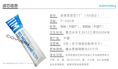 coway熊津豪威净水器P-09CR反渗透纯水机全套滤芯包邮