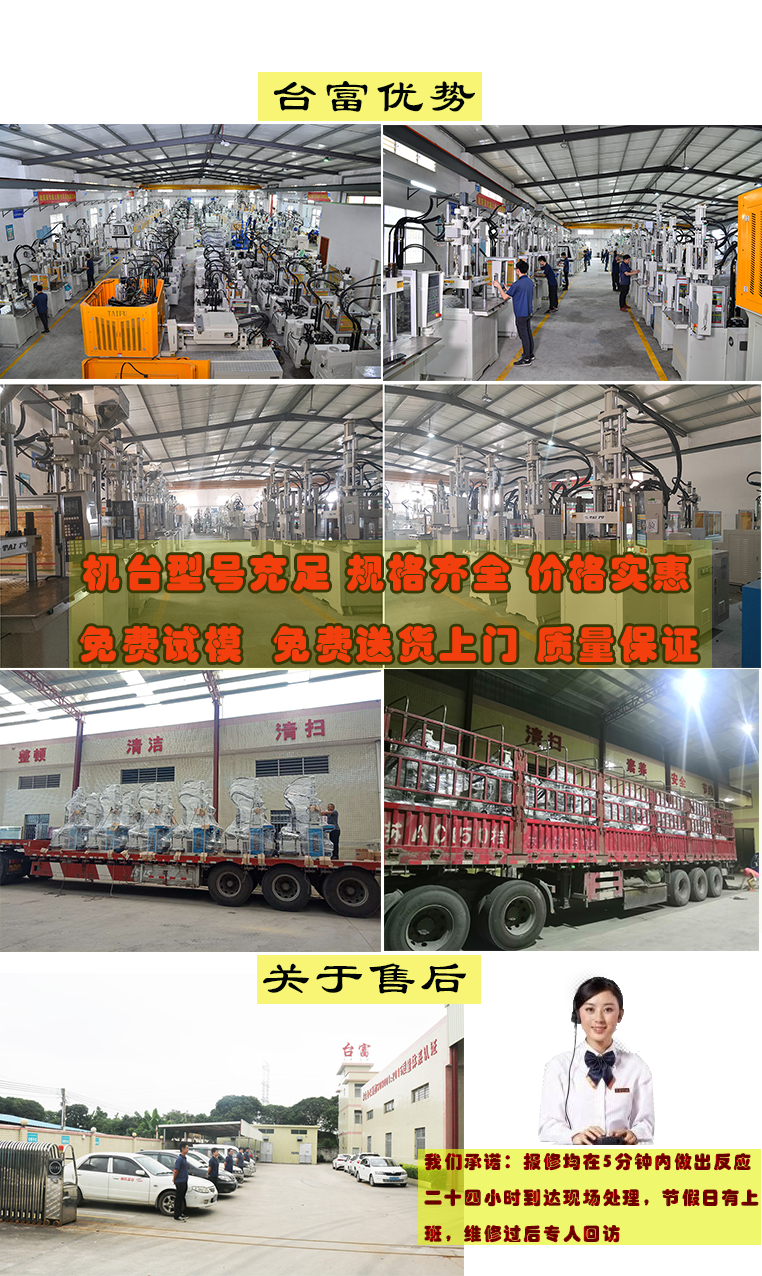 2.立式锁模,外加圆盘,并配合两座立射出单元(立的液压油路),锁模力由55TON~500TON,采用全电脑控制,低高液压系统,更适合生产一般或特殊的双色(双物料)的成型。