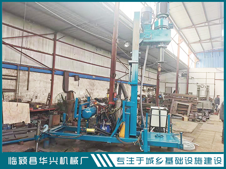 牵引式正循环钻机临颍县华兴机械厂生产的正循环主要有两款,一款是高低档正循环,一款是多档正循环,如果是地层比较复杂的话,可以选用多档正循环,如果是一般地层的话用高低档的就可以,3寸正循环钻机,钻孔直径25-80公分,钻孔深度0-100米,客户可以根据所下管子的直径,配不同直径的钻头,深度的话可以通过调节钻杆长度来调节。