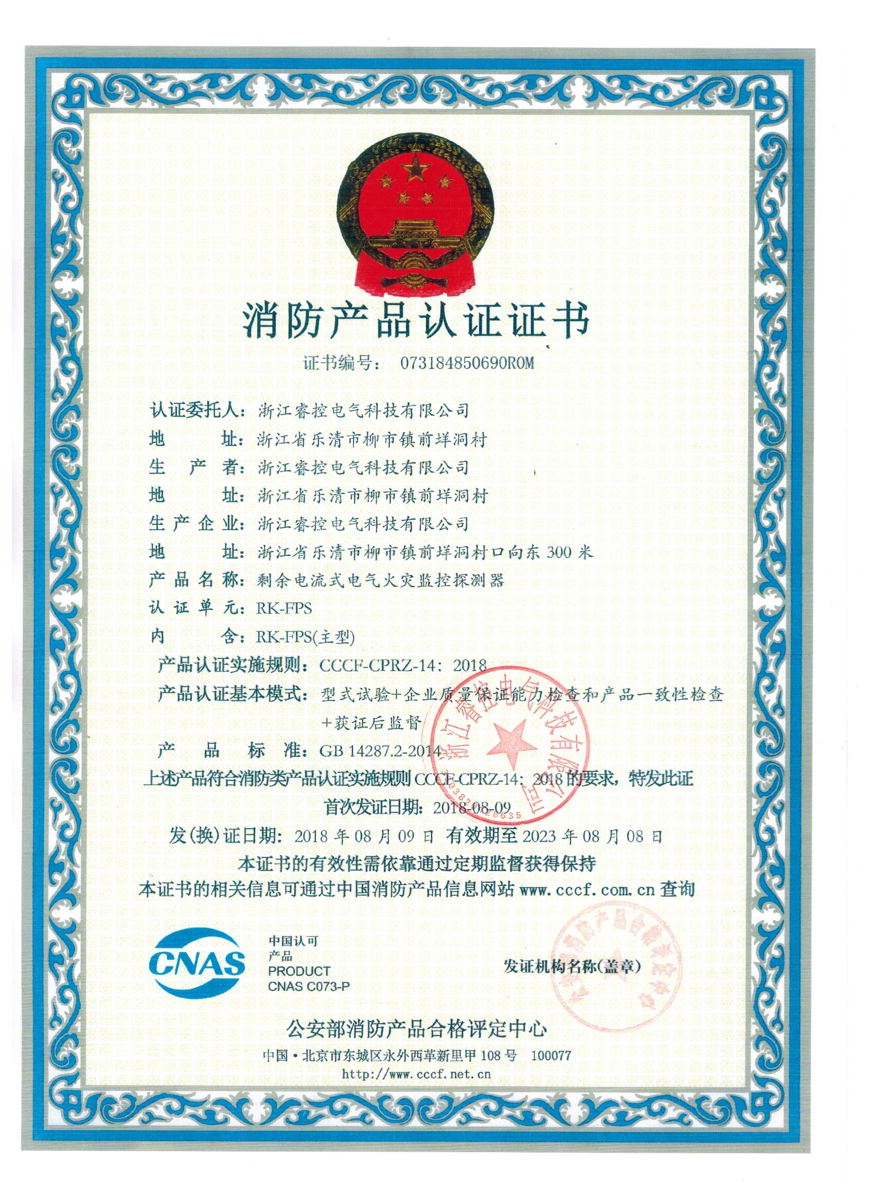 睿控智慧消防安全用电监控装置配电箱可定制火灾报警器证书