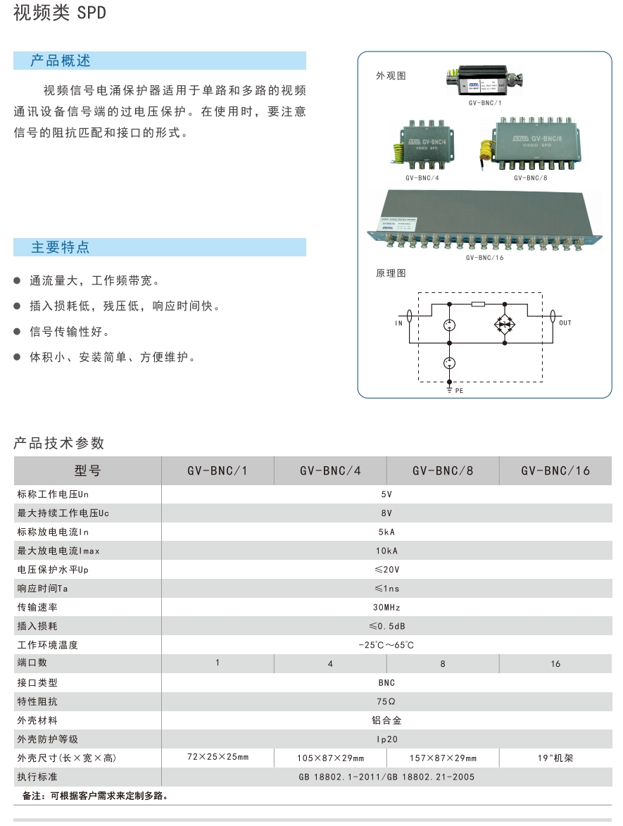 视频信号电涌保护器适用于单路和多路的视频通讯设备信号端的过电压保护。在使用时,要注意信号的阻抗匹配和接口的形式