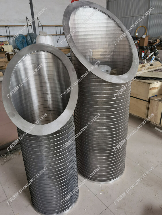 衡水广兴滤材生产的楔形丝滤筒由绕条缠绕托条焊接而成,具有焊接强度高,缝隙均匀,精度高,耐腐蚀,使用寿命长,滤筒内部表面光滑,具有纯的圆度。我公司生产的过滤筒广泛应用与各类大中型过滤设备,如自动清洁过滤器,刮除式过滤器,自动排污过滤器,旋转式细格栅过滤机、转鼓细格栅、转筒筛、离子交换器等固液分离设备。楔形丝滤筒的过滤精度范围0.1mm-10mm,结构设计合理,使用寿命长,是到目前为止的过滤元件之一。主要材质由304、316L,也可按照客户要求设计、生产。