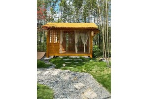 防腐木茶室具备防腐防潮、环保耐用、安装便捷三大特性。特殊处理的木材能有效抵御风雨侵蚀,延长使用寿命;天然木材环保,贴近自然;模块化设计使其可快速组装拆卸,便于移动与改造,适应不同户外场景需求。