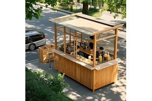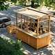 防腐木售货亭外观造型丰富多样,可设计为传统中式风格,搭配飞檐翘角、雕花门窗;也可采用现代简约风格,线条利落、棱角分明。木材颜色可通过涂刷不同漆料进行调整,从原木色的自然纯粹到深棕色的沉稳大气,满足不同场景的视觉需求,与周边环境和谐相融。