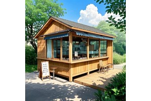 在结构上,防腐木售货亭采用框架式结构,以防腐木立柱和横梁搭建稳固骨架,墙体和屋顶采用拼接式防腐木板。内部根据功能需求设置隔断,如用木隔板分隔售卖区和储物区。门窗采用密封性良好的设计,保障亭内环境稳定,同时方便通风采光。