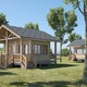 木屋别墅是以天然绿色木材为墙体材料的新型建筑。它经过木材采集,锯材加工、干燥,根据不同建筑造型生产加工成不同的墙体型材,后到施工现场组装,再经过防火、防腐处理等工序,全部部件均在车间内加工完成。除主体建筑外,电气装配、给排水、通风、采暖空调、卫生洗浴、装饰装修也随之配套完成。