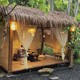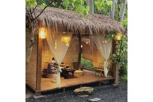 防腐木茶室以自然、质朴为基调,木材纹理清晰可见,散发着淡淡的木香。茶室内部布局简洁,原木色桌椅搭配棉麻坐垫,营造出温馨舒适的氛围。透过宽大的玻璃窗,户外景色尽收眼底,阳光洒入,与木质结构相映成趣,让人仿佛置身于森林之中,享受宁静惬意的品茶时光。