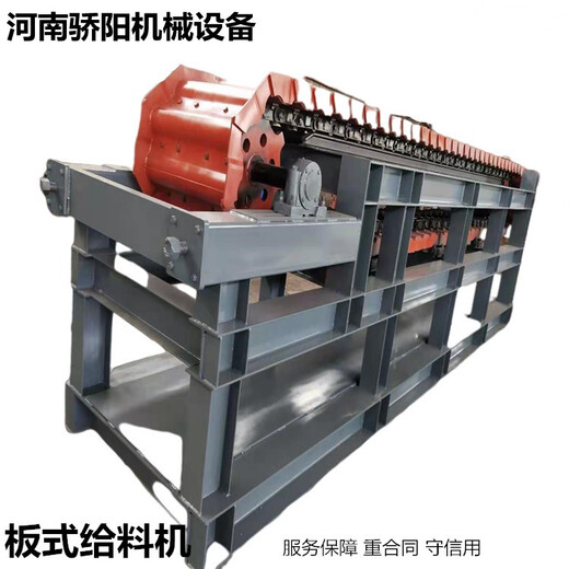 矿山重型链板给料机在运行时由电机将动力源通过减速机传到主动链轮由主动链轮带动链板、槽板将槽板上的矿石运输到破碎机或带式输送机上。
